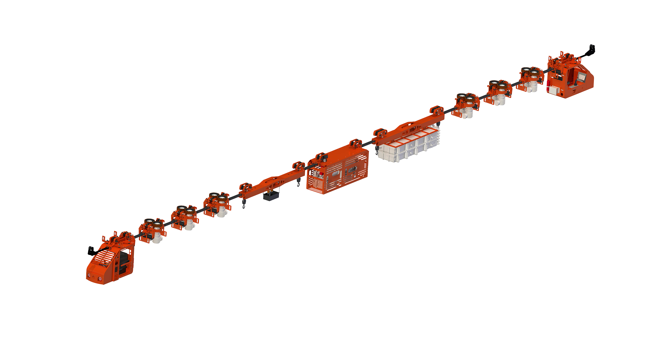 Auxiliary transportation systems for safe and efficient movement of materials, equipment and personnel in underground roadways. Designed to integrate with PantherTech tunneling and lane maintenance solutions.